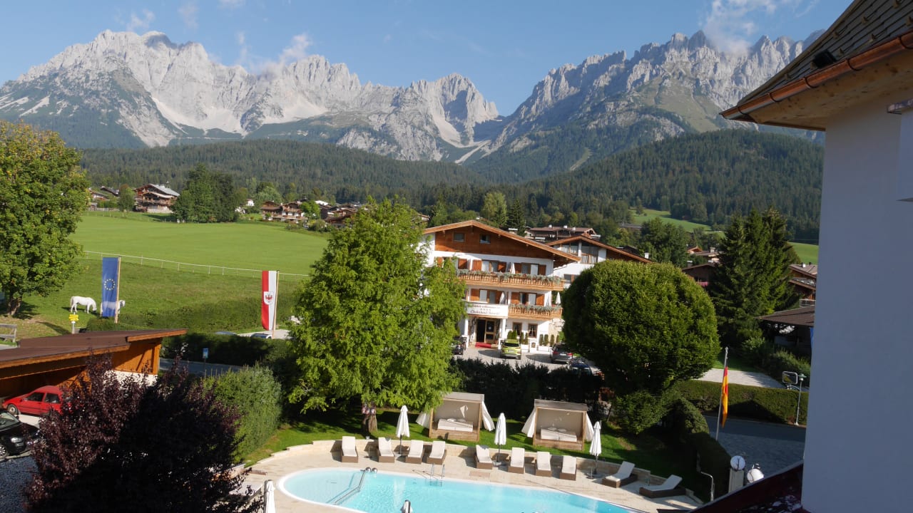 Blick vom Haupthaus zum Chalethotel