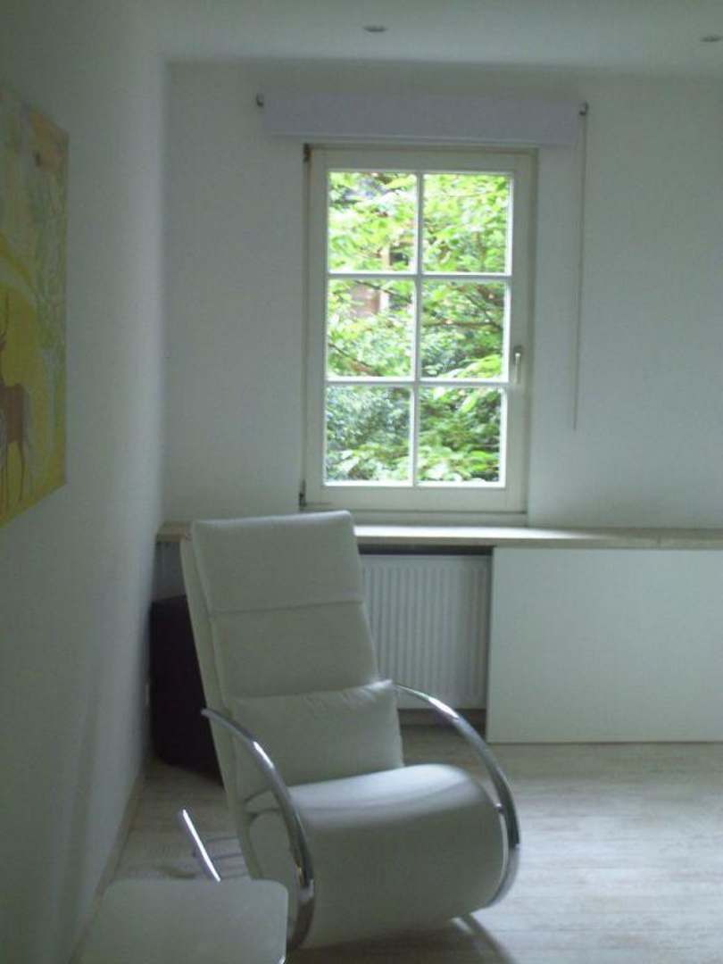 Als besondere Sitzgelegenheit im Zimmer, ein Schaukelstuhl aus weissem Leder