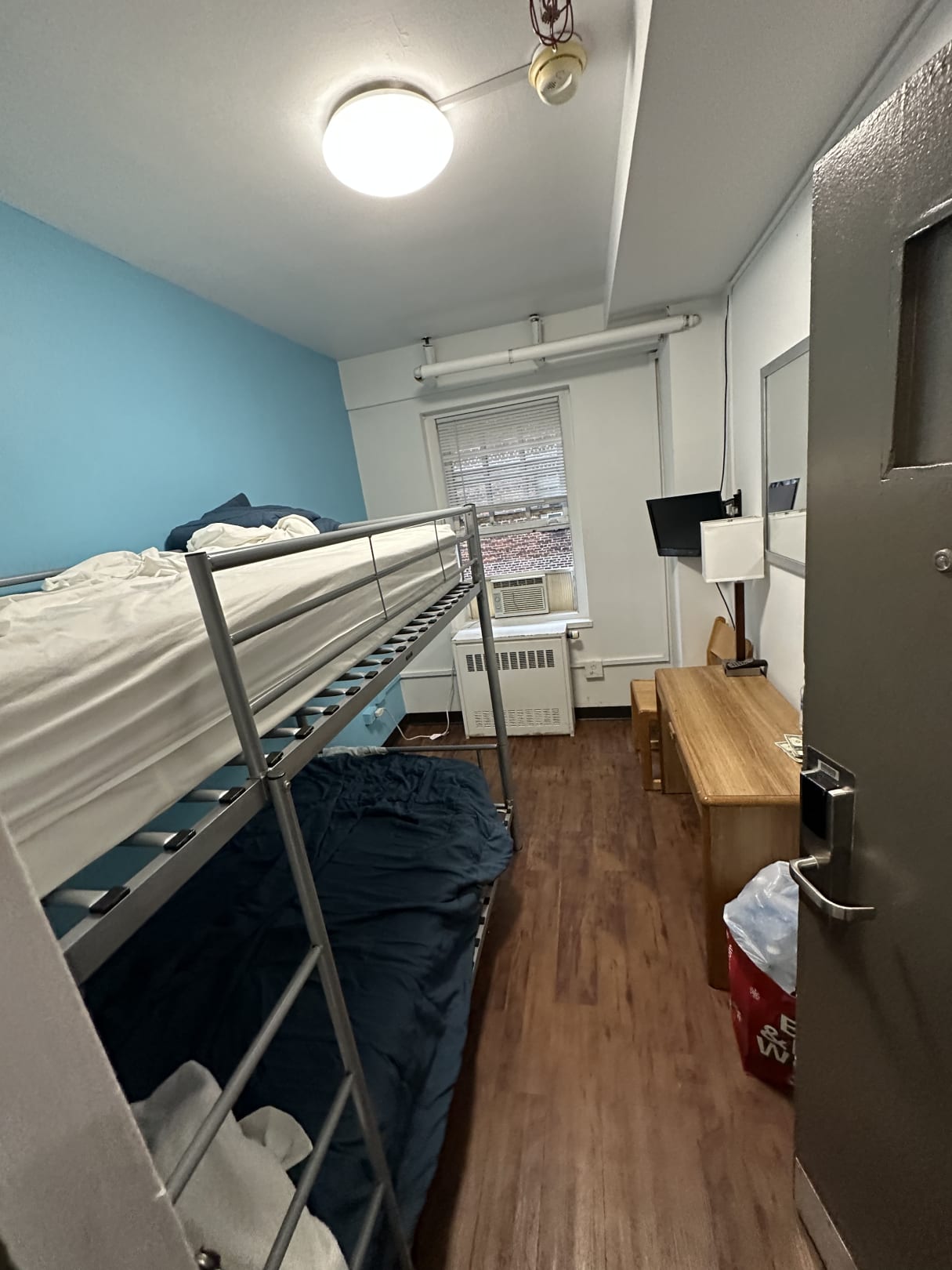 Zimmer bei Abreise. Einbauschrank befindet sich hinter der Tür.