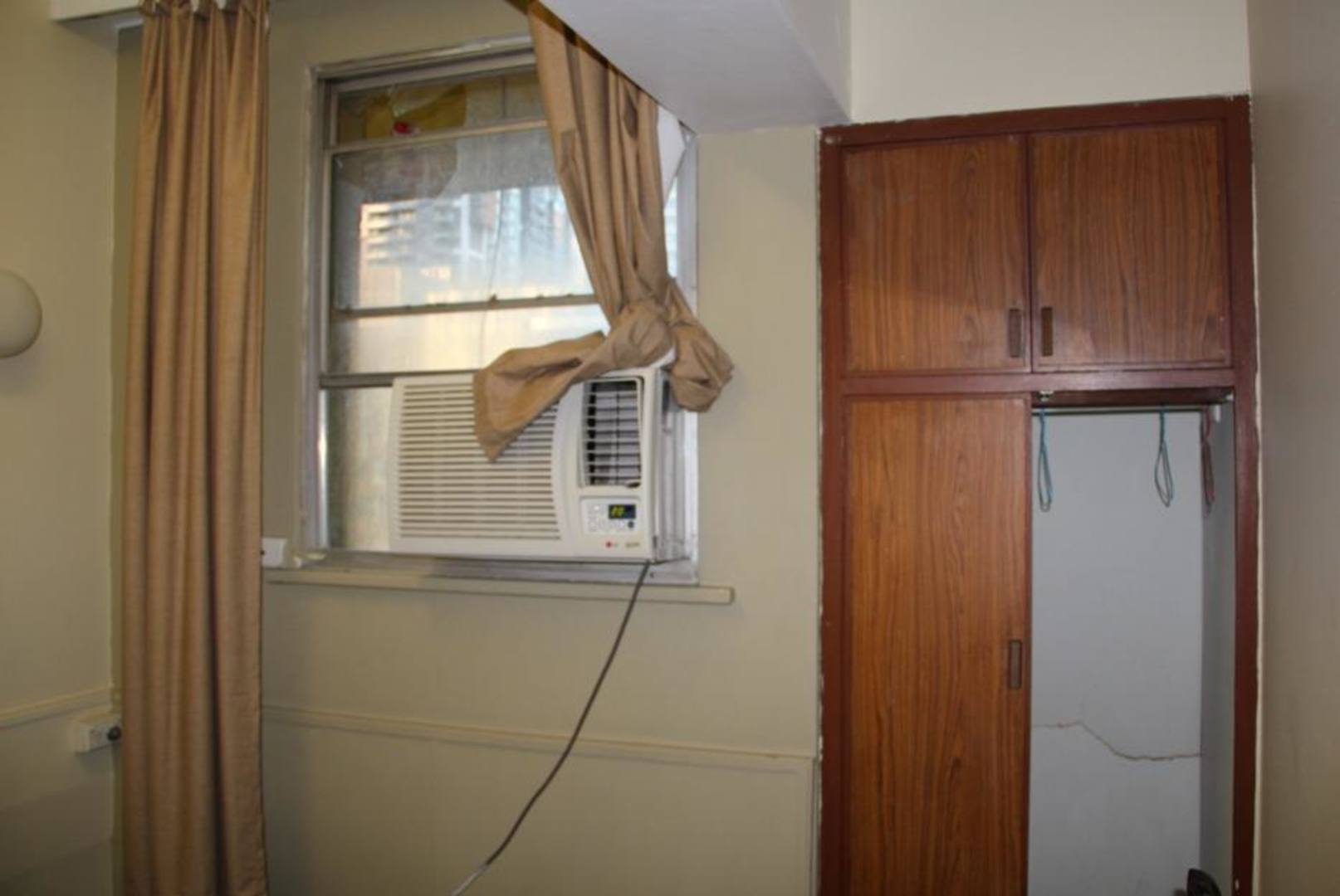 ZimmerIm linken oberen Eck des Fensters kann man das große Loch sehen. Außerdem zu sehen ist der kaputte Kasten.