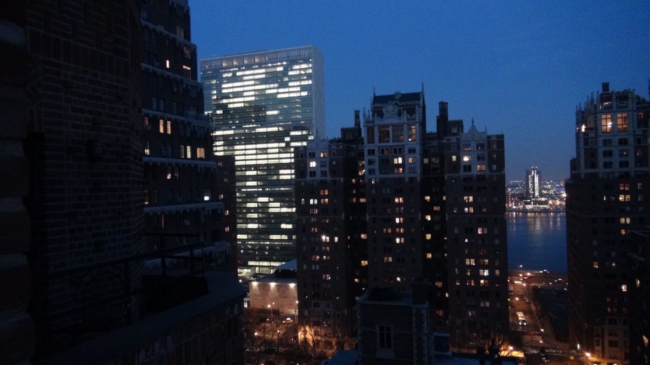 Ausblick vom Balkon in Richtung East River und UNO Gebäude