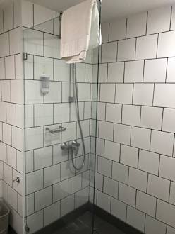 Große barrierefreie Dusche, sehr bequem für ältere Personen.
