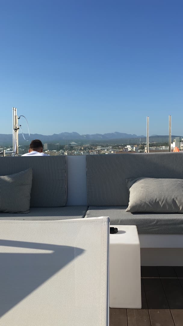 Blick von der tollen Dachterrasse Richtung Berge