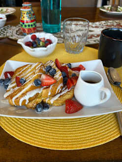 GastroFrisch zubereiteter French Toast zum Frühstück. Es gab auch noch Omeletts und frischen Orangensaft und frisch zubereitete Smoothies.