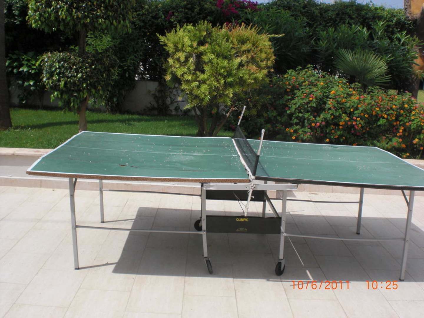Vom Wasser aufgeweichte Tischtennisplatte