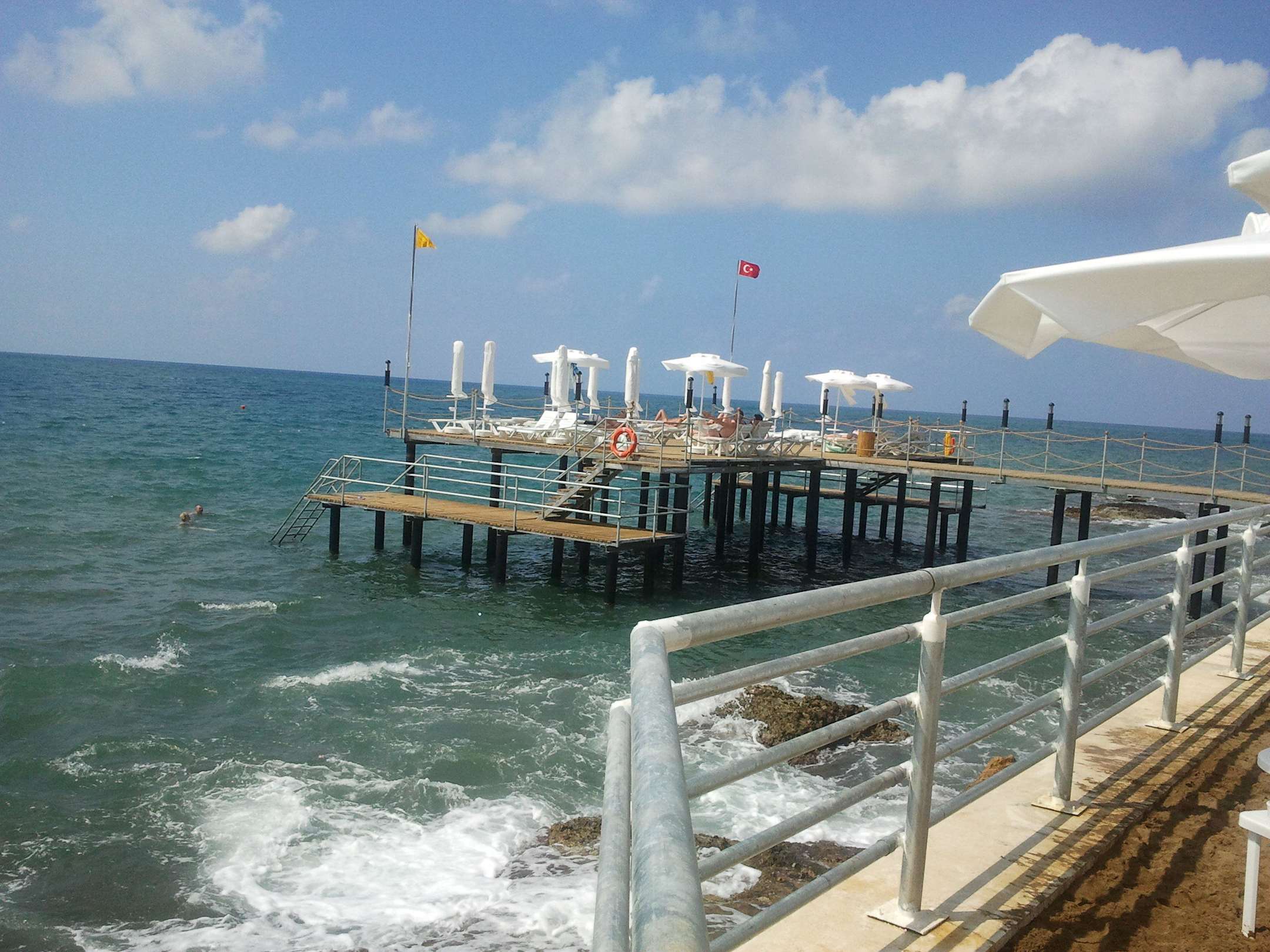 Blick vom Strand auf die Badeplattform