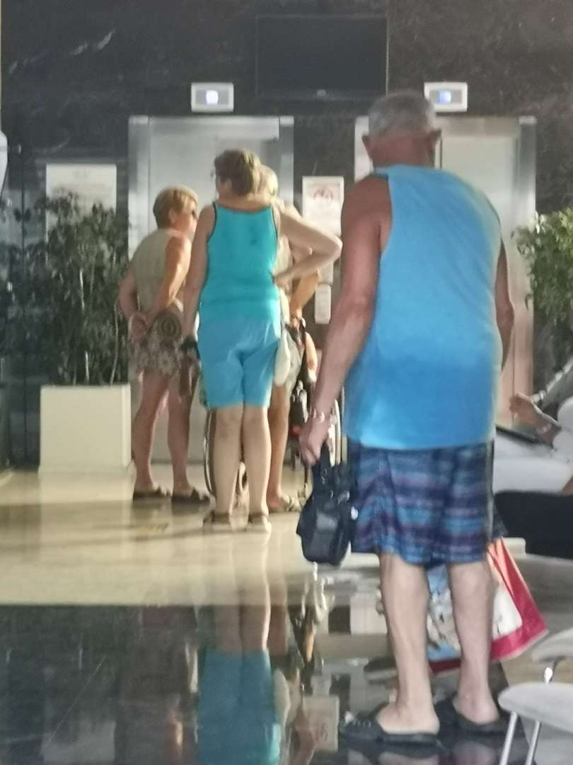 Schlange stehen am Aufzug