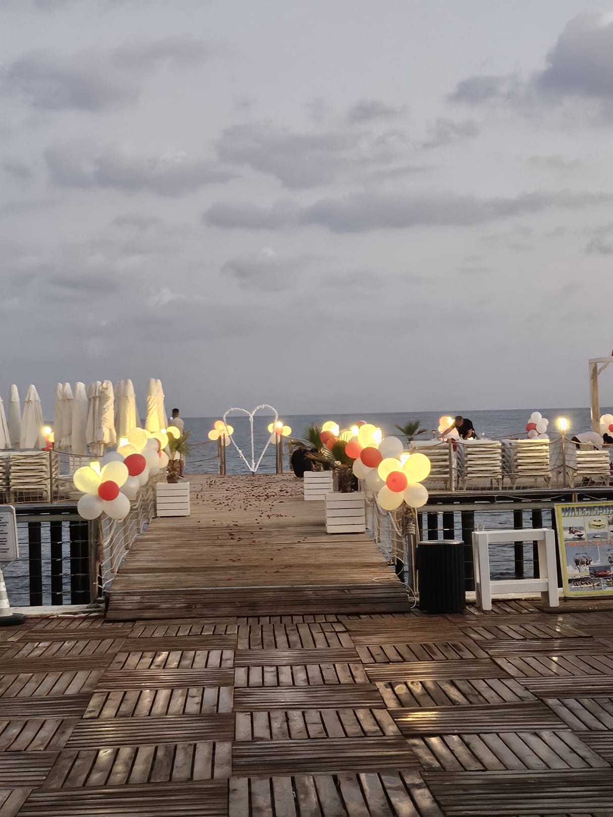Arrangement für Heiratsantrag am Pier