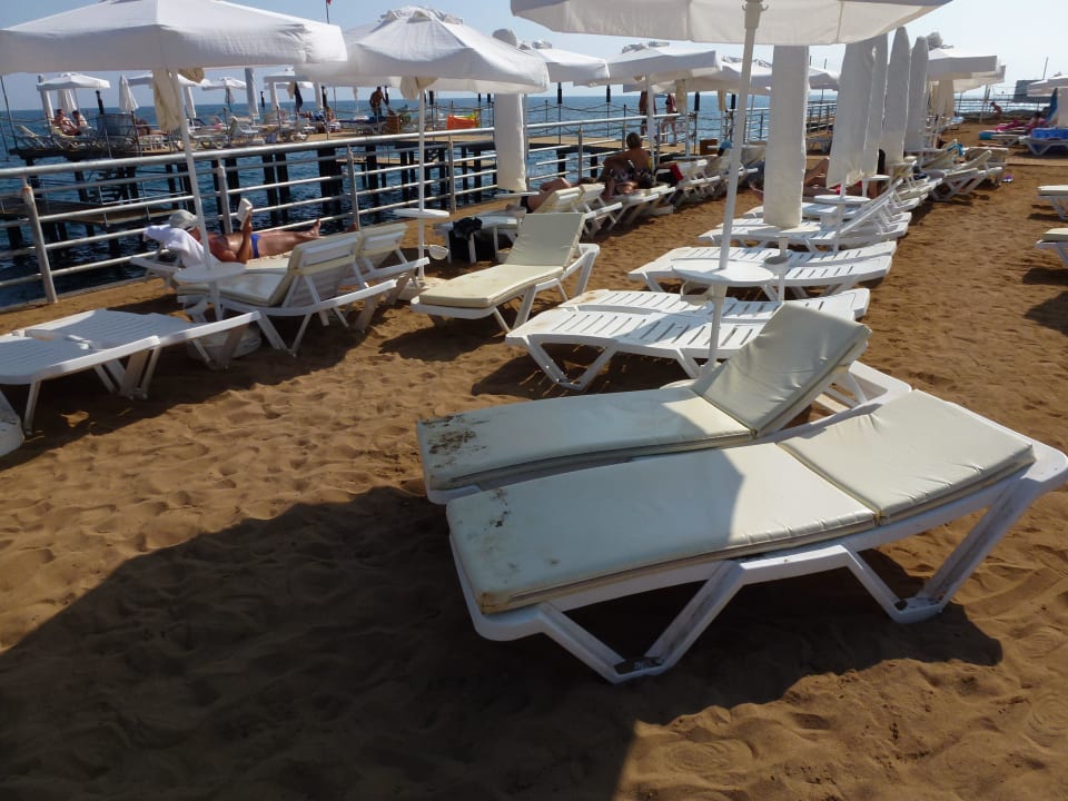 Dreckige Liegen, meist ohne Auflagen, kein Service