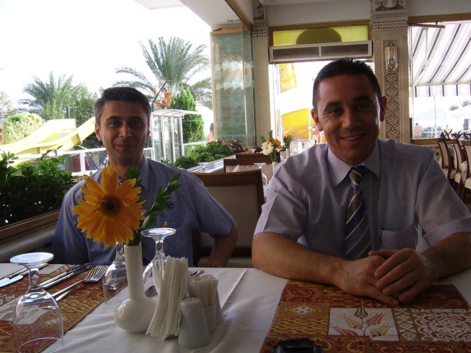 Gute FreundeMehmet (Li.) und Numan (Re.) Mehmet ist die gute Fee an der Rezeption und Numan ist der beste Reataurantchef!