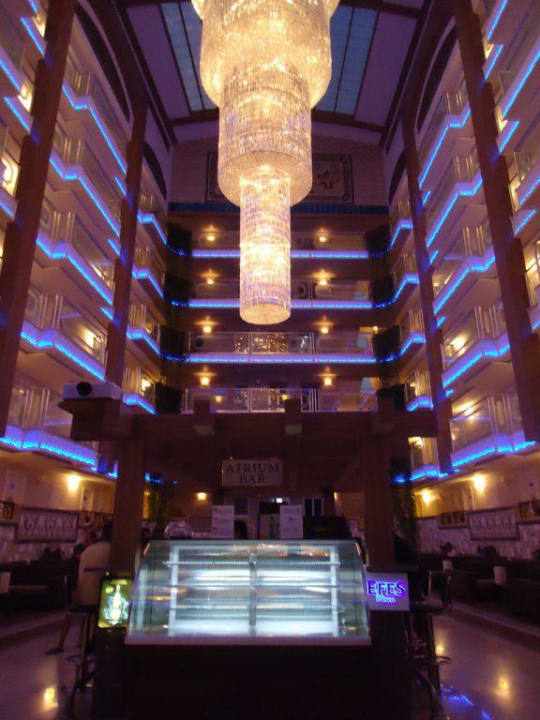 Atrium Bar am Abend mit dem riesigen Kronleuchter