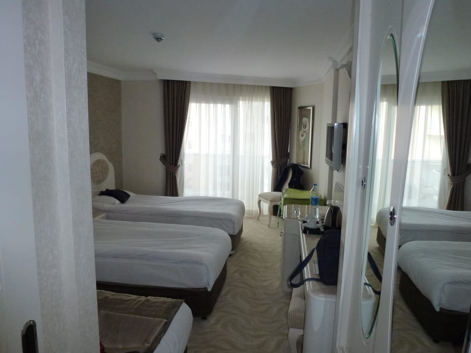 Der Platz ist ausreichend aber nicht üppigZweibettzimmer mit seitlichem Meerblick - ein drittes Bett engt hier stark ein.