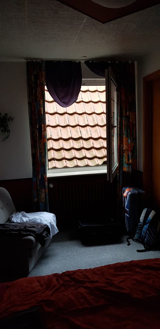 Blick aus dem Schlafzimmer - auf ein Dach weniger als 1 m enternt