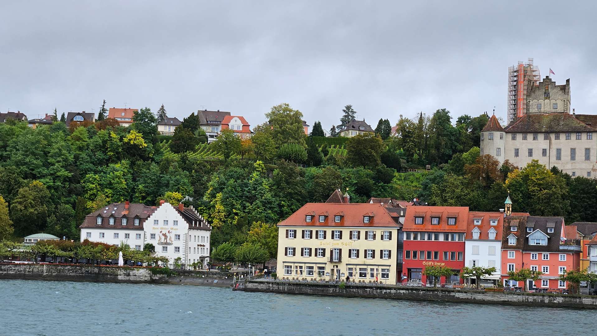 Links das Hotel von der Seeseite