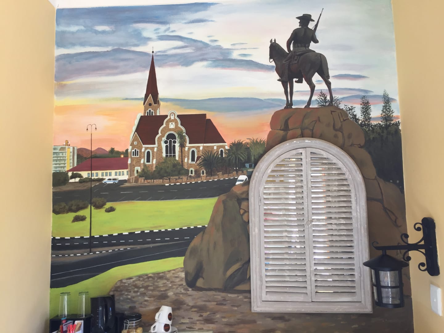 Ein wunderschönes, gemaltes Wandbild auf dem Zimmer