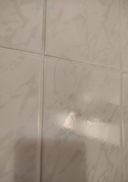Haare an der Wand in der Dusche.