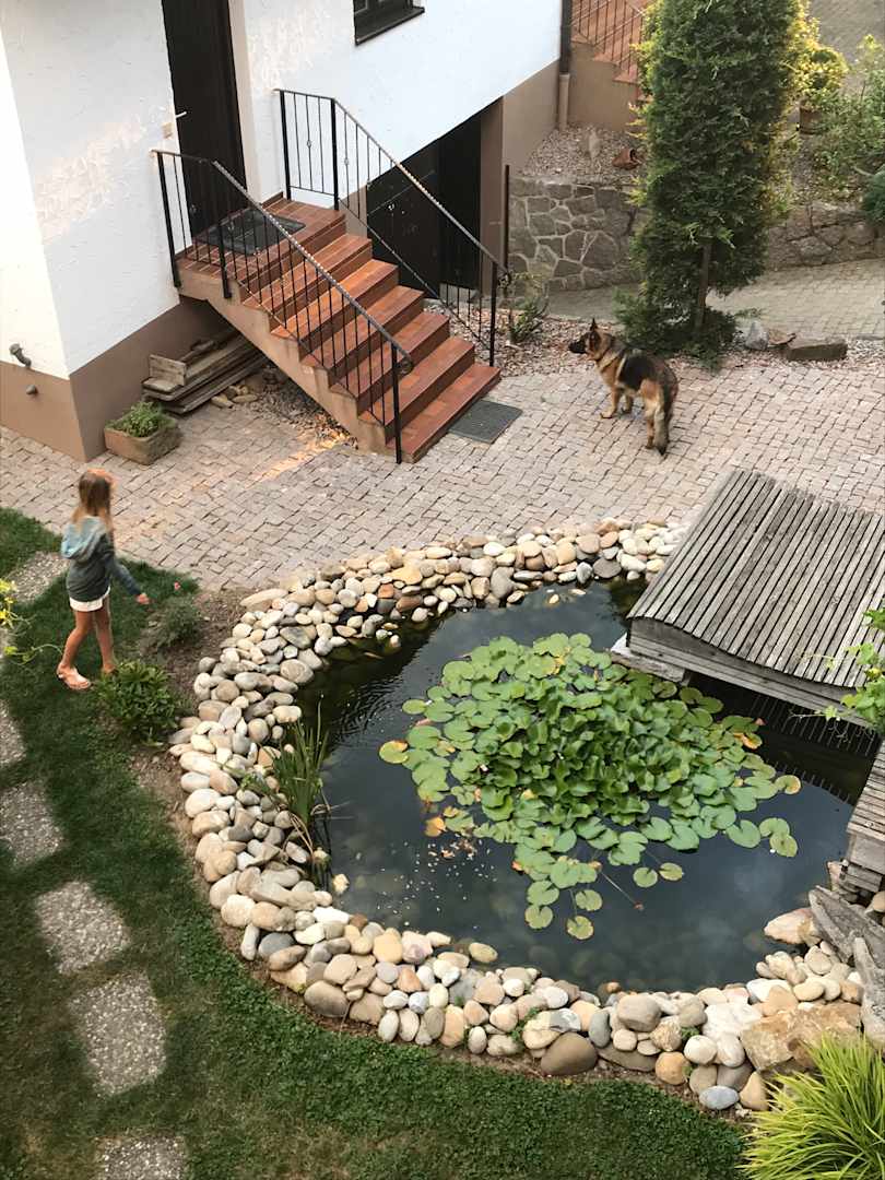 Ausblick von der Weißburgunderwohnung auf den Teich.