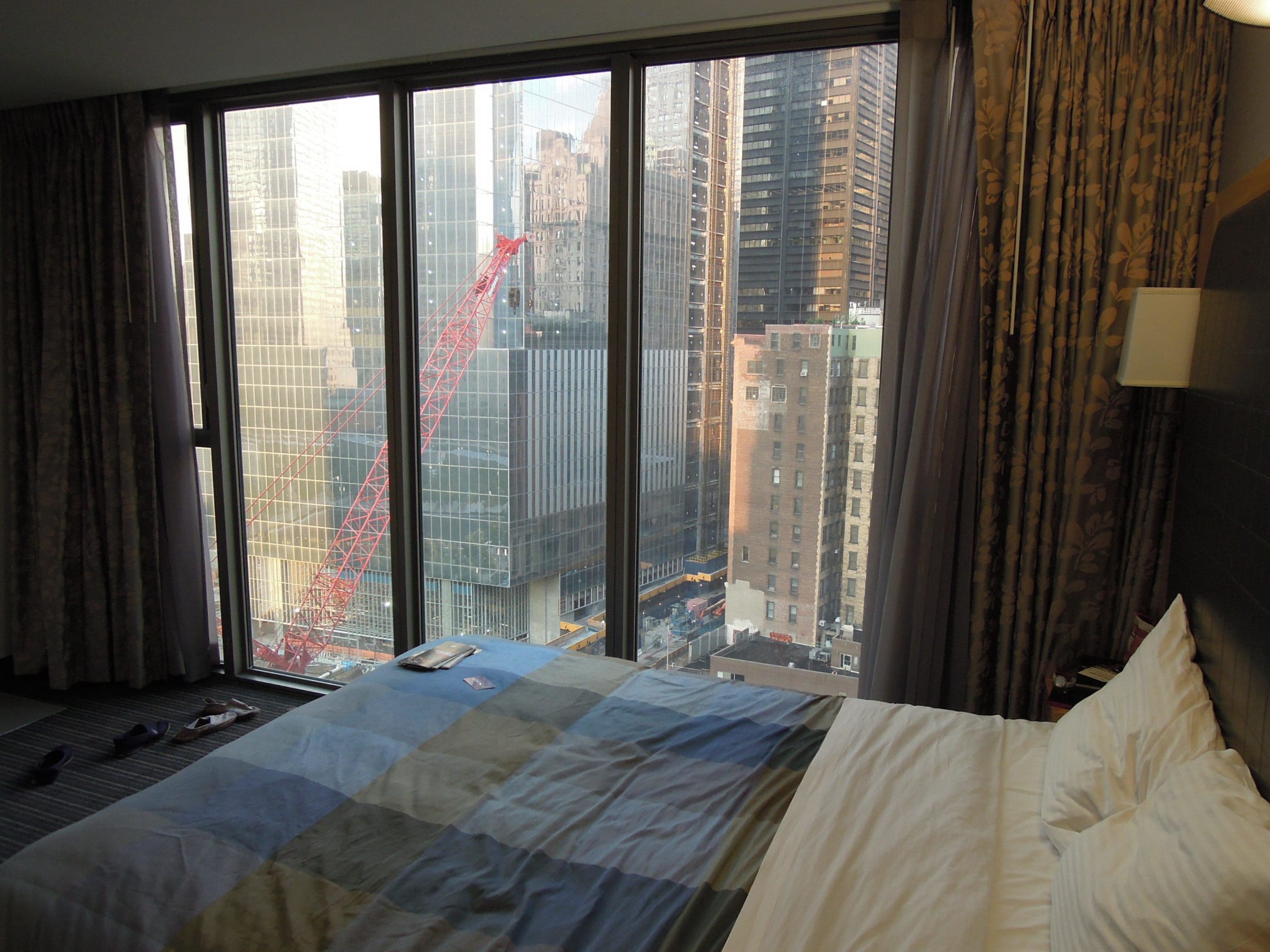 Część sypialna wraz z widokiem na wieżowce.