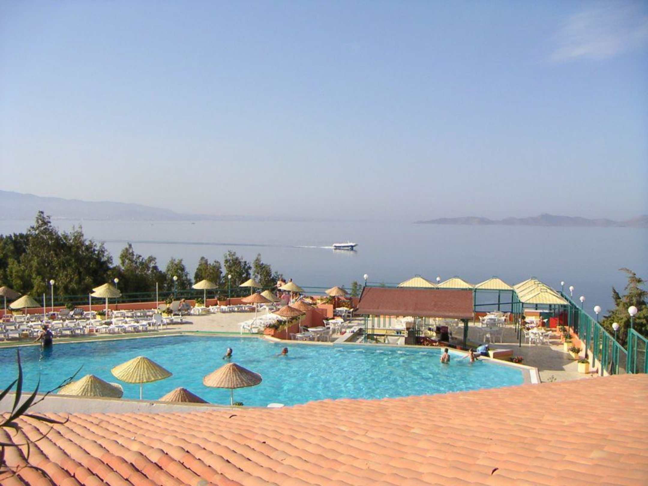 Blick auf den Pool und das Meer