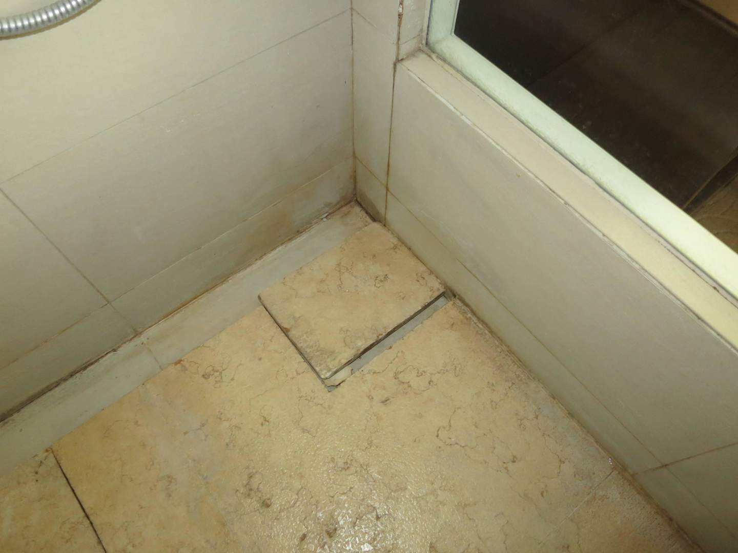 Lose Platten und Seifenresten in den Fugen