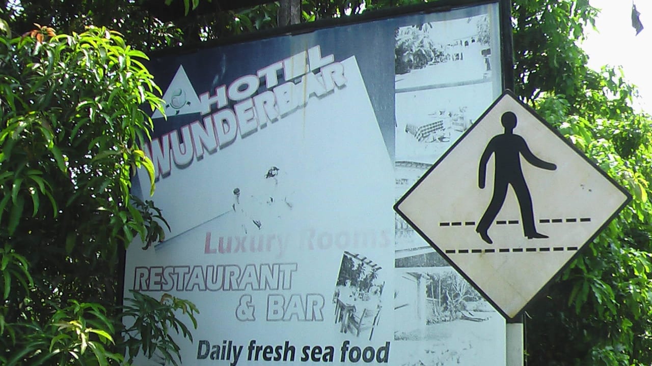 mit Schild dahinter Hotel Wunderbar