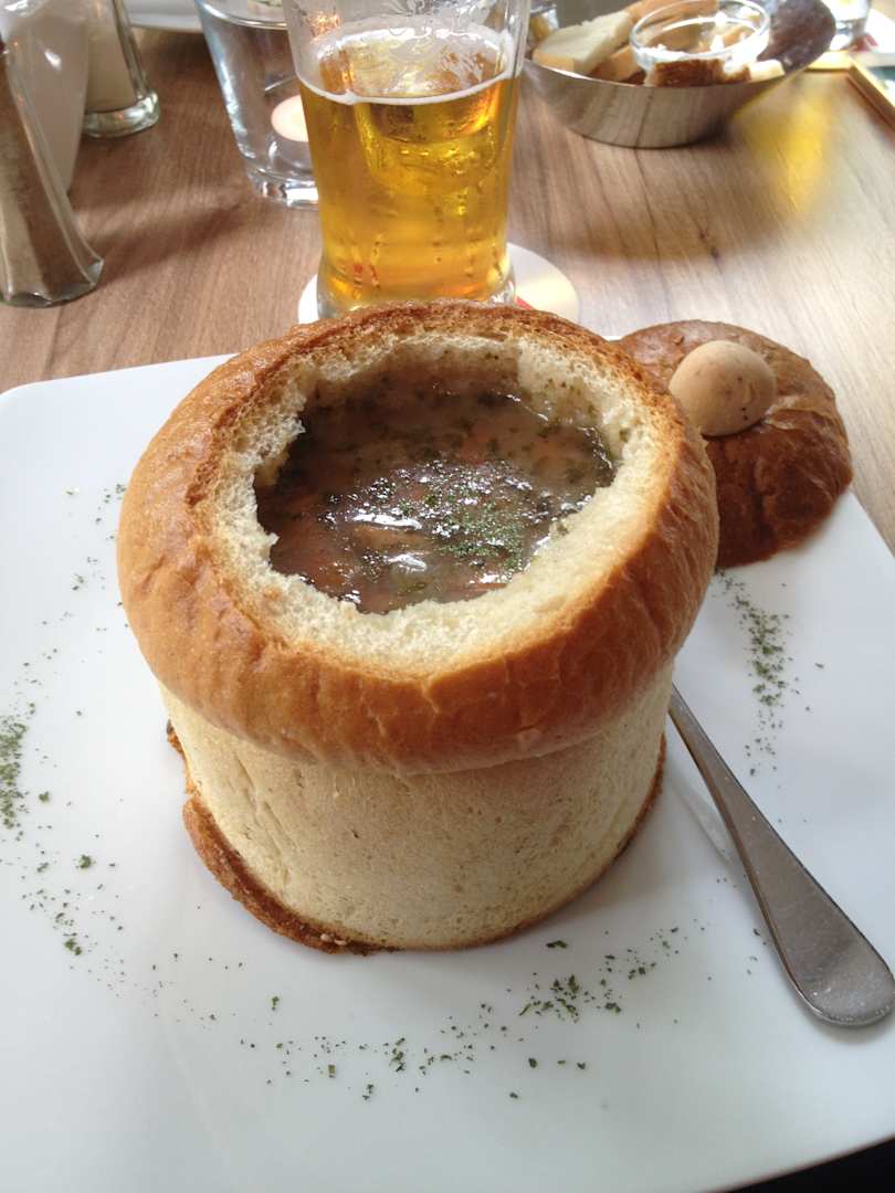 Eine Art Kartoffelsuppe (Zschureck) im Brotteig ist vor suppe !