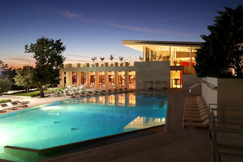 Einer der Außenpools im Hintergrund das Restaurant.