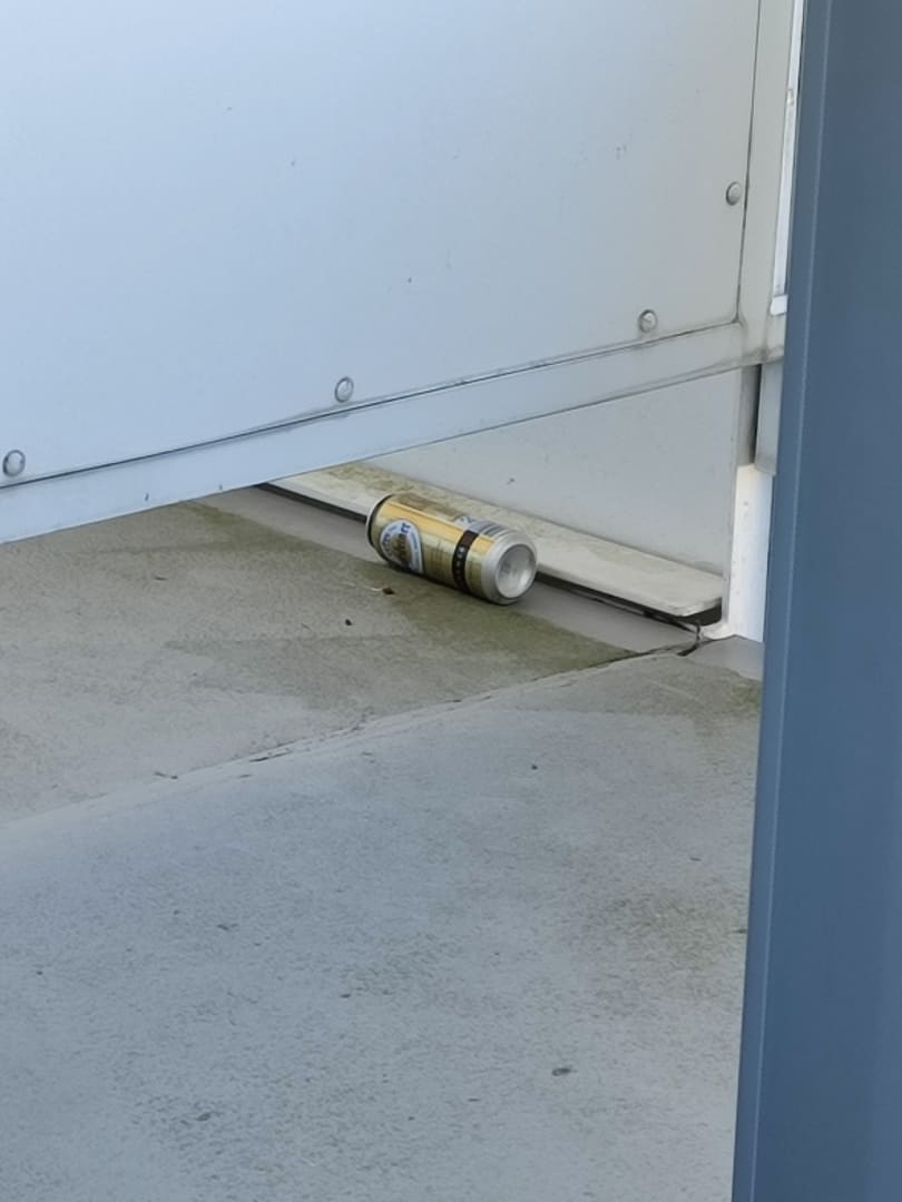 Büchse voll mit Kippen vom Nachbarzimmer... wurde elegant zu uns rüber gerollt!