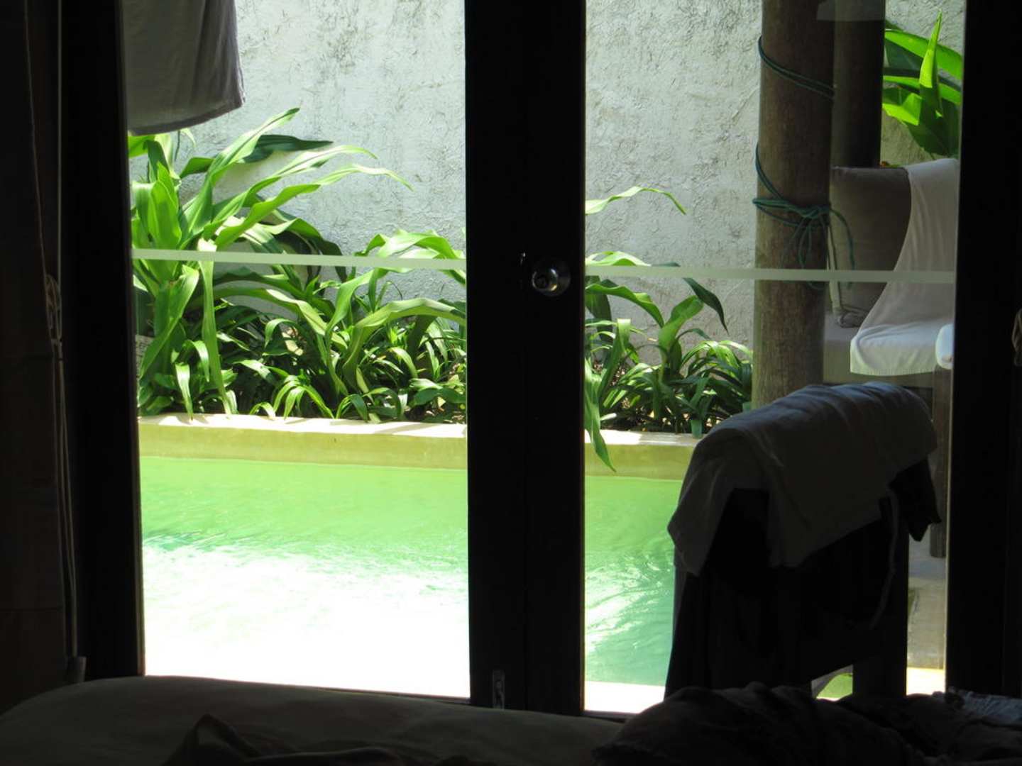 Pool-Villa / Blick vom Bett auf Pool