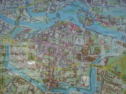 man erkennt das Zentrum mit Marktplatz (Rynek). Von dort aus in linke Richtung sieht man die Straße (sw. Mikolaia) in der sich das Hotel befindet "Sofitel" genau ggü. der Kirche. Ideale Lage, um die Stadt zu erkunden.