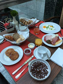 Kleine Auswahl des Frühstücksbuffets