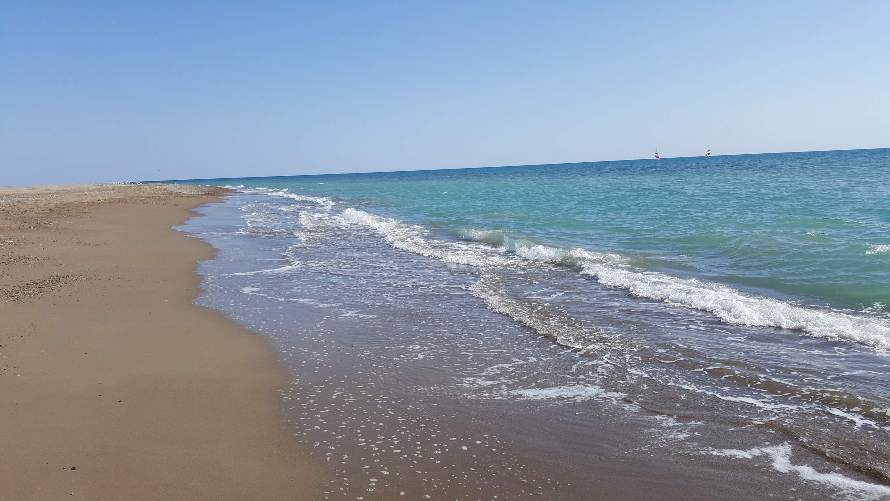 der Strand links vom Hotel