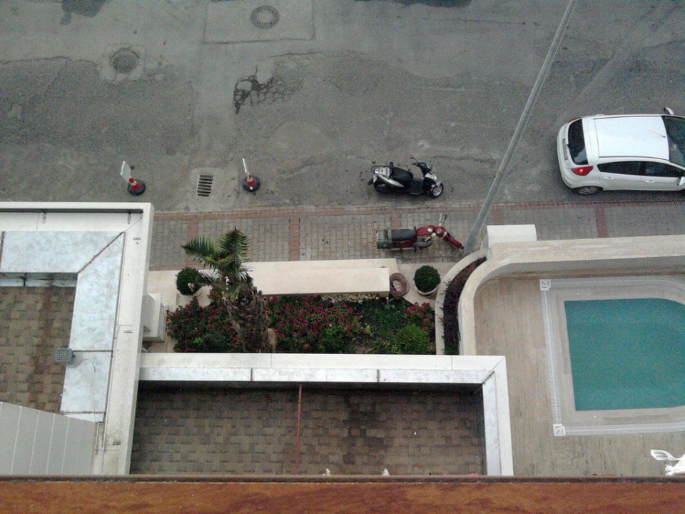 Blick vom Zimmerbalkon auf den Whirlpool welcher sogar beheizt ist.