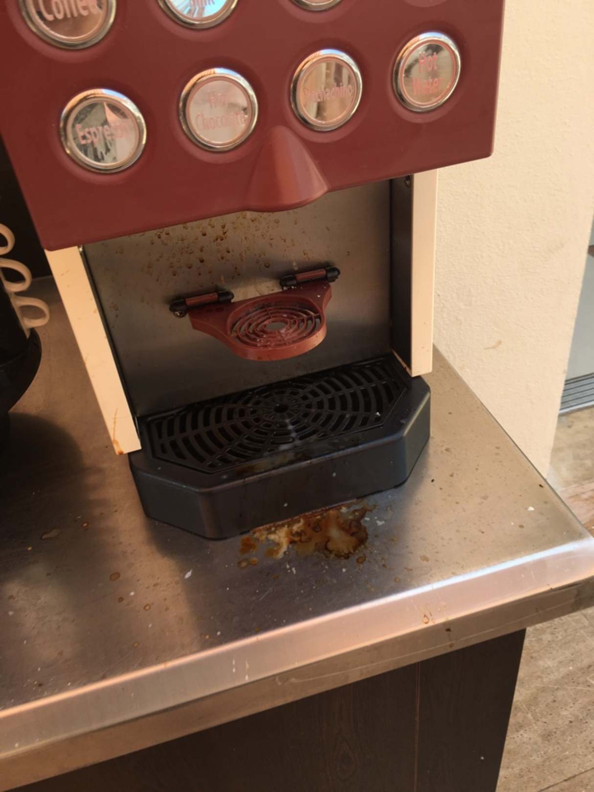 Kurz vor Mittagessen ... schmeckt der Kaffee gut bei solchem Anblick. Personal hat lieber mit dem Handy gespielt anstatt mal den Lappen zu schwingen