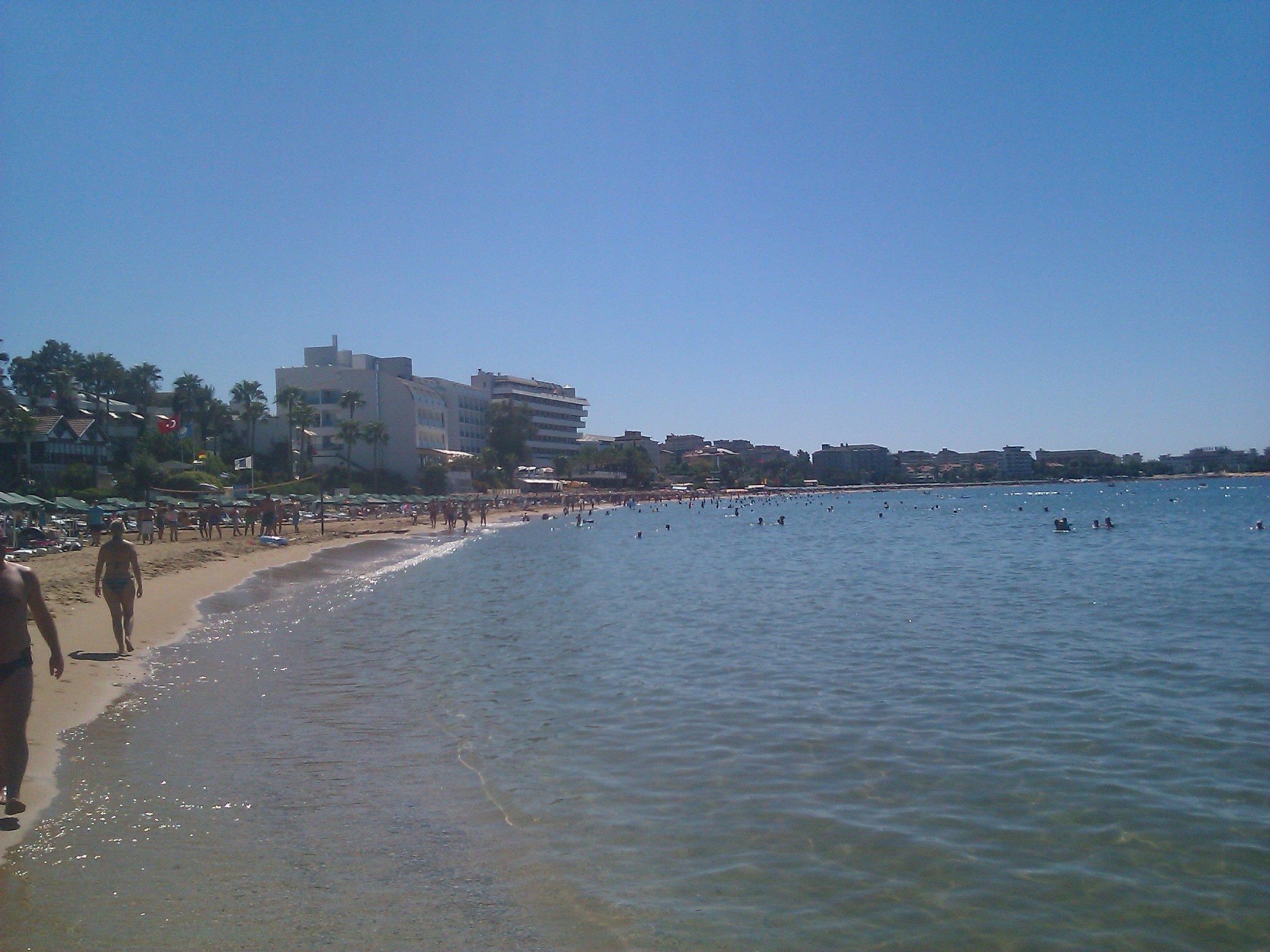 Feinsandiger, flach abfallender Strand. Meist sauberes Wasser