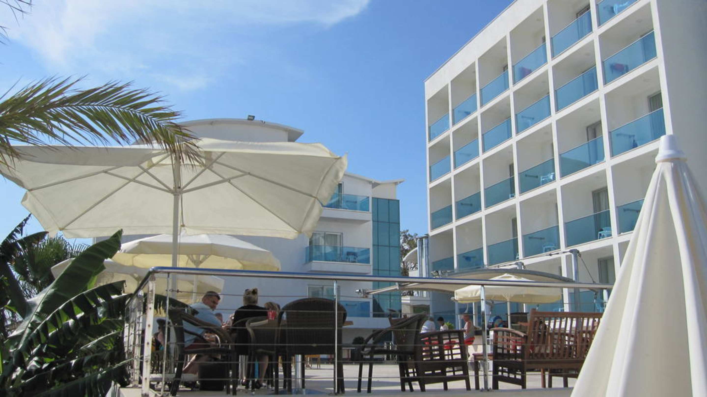 Bar und Terrasse vom Pool aus gesehen