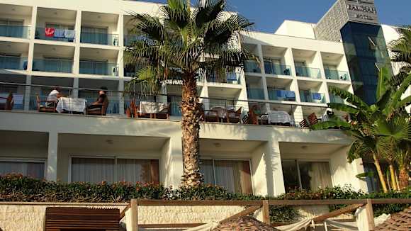 Blick von Strand aufs Hotel