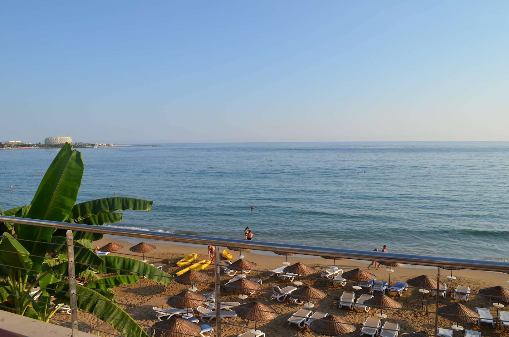 Der Ausblick von der Terrasse auf den Strand