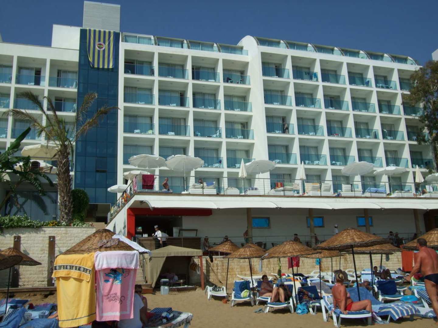 Blick vom Strand auf die Strandbar
