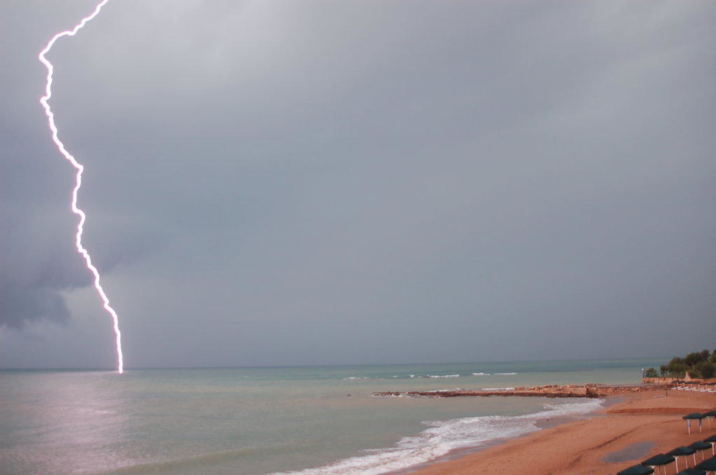 Strand bei Unwetter mit Blitz