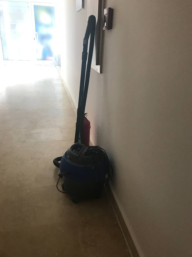 Putzutensilien stehen dauerhaft auf den Flur