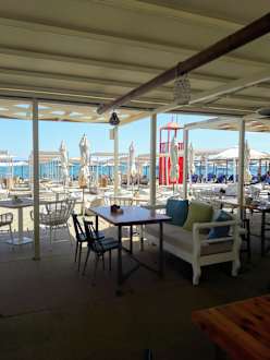 GastroHier könnte man frühstücken. Das Restaurant bietet durchgehend warme Küche. Sehr schön direkt am Strand.