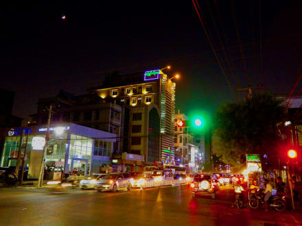 Blick von der Kreuzung auf das Hotel