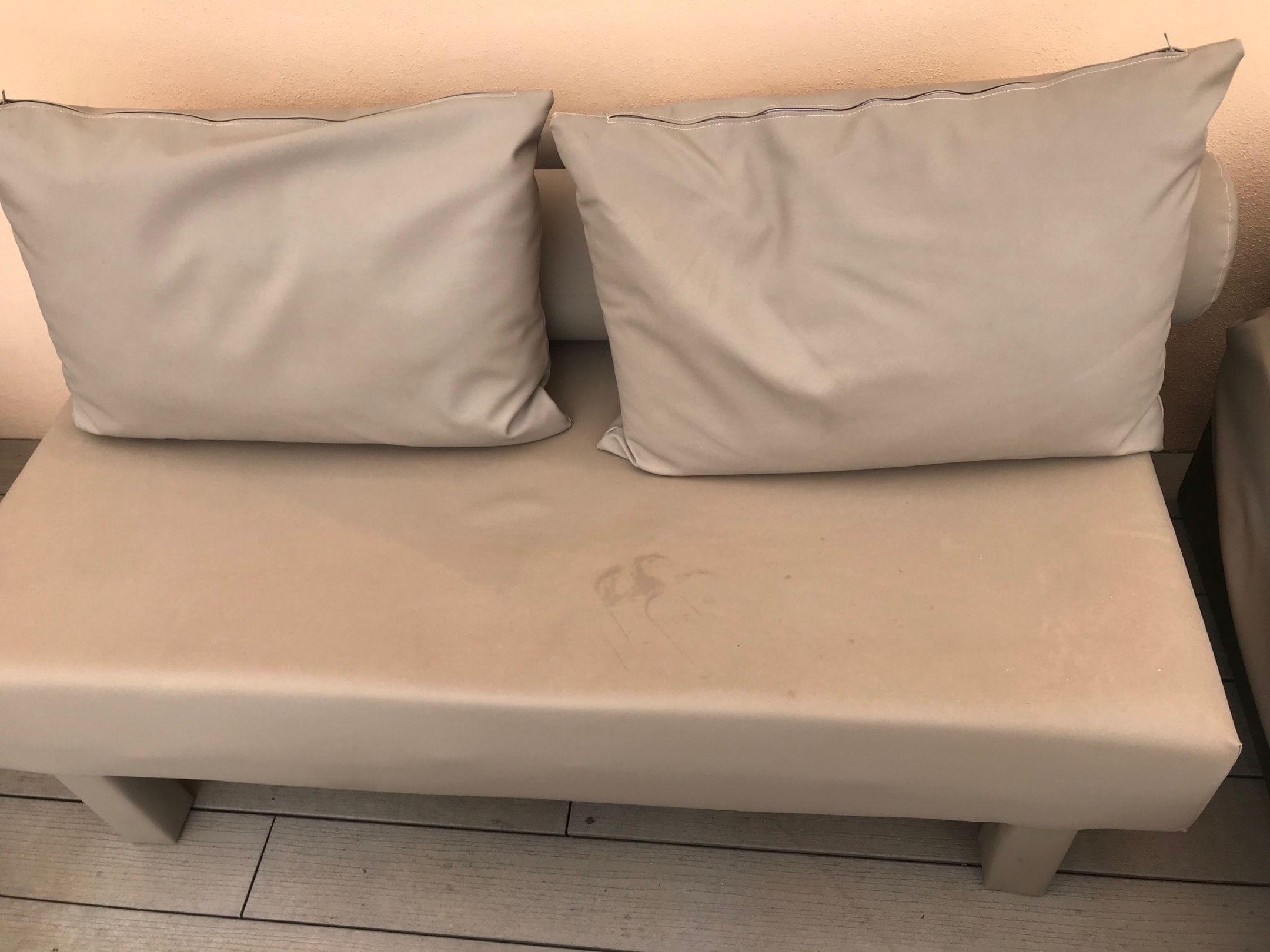 Möbel auf dem Zimmer haben Flecken.