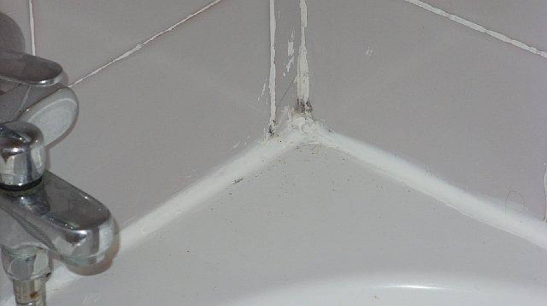 Renovierungsbedürftiges BadSilikon wurde einfach über den Dreck gezogen