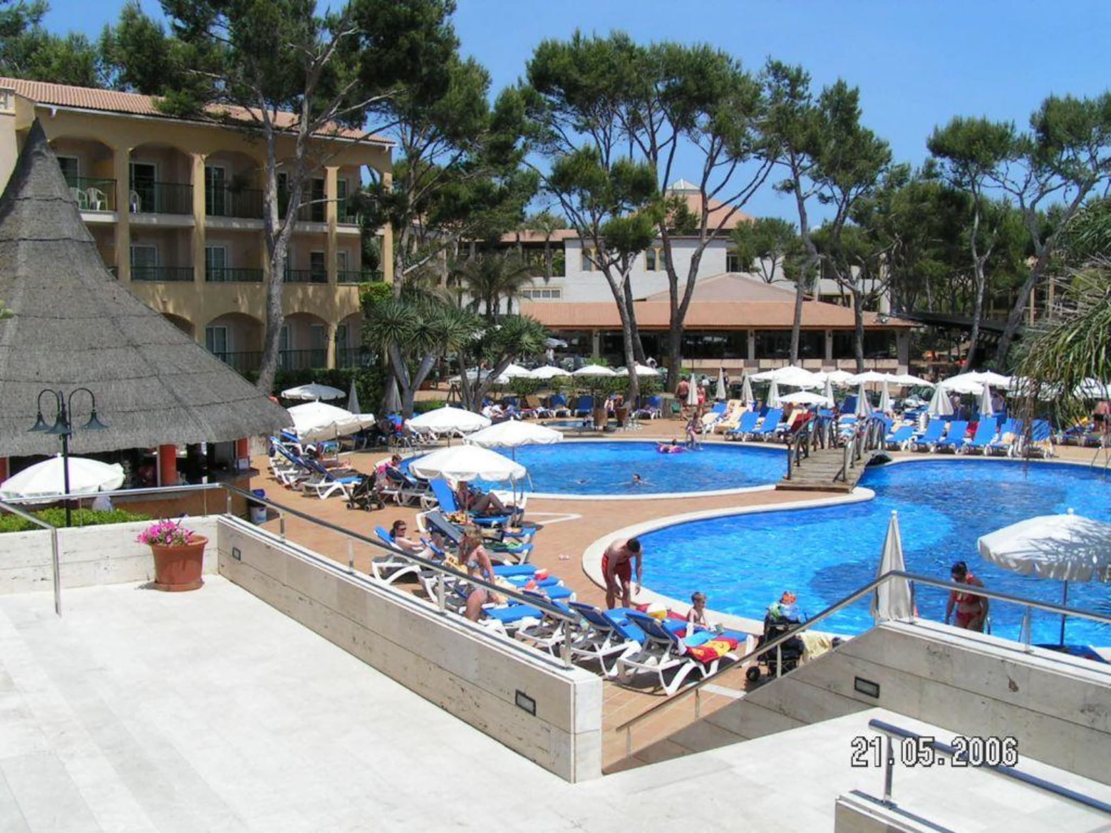 Poolanlage Cala Mesquida ClubSicht auf Poolanlage vom Haupthaus mit Poolbar (linke Seite)