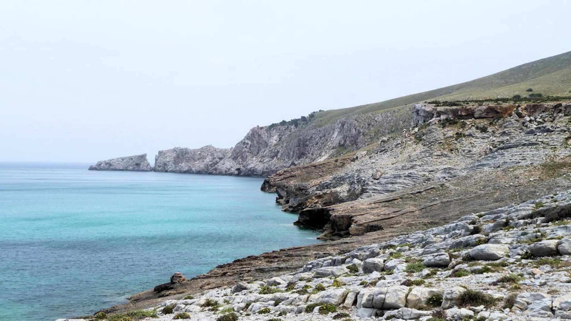 Klippen an der Küste neben dem HotelKlippen neben der an der vom Hotel abgewandten Strandseite Richtung Cala Rajada