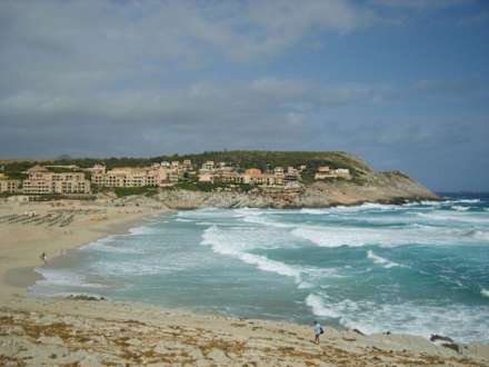 Blick über den Strand auf das Cala Mesquida Resort