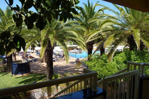 Blick aus Haus 2 in Richtung Pool