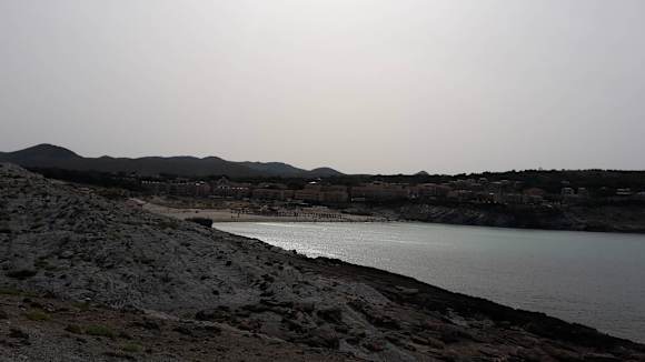Strand Cala Mesquida, Hotel im Hintergrund